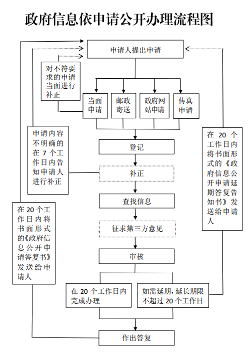 本机关处理政府信息公开申请的流程可以参见流程图: