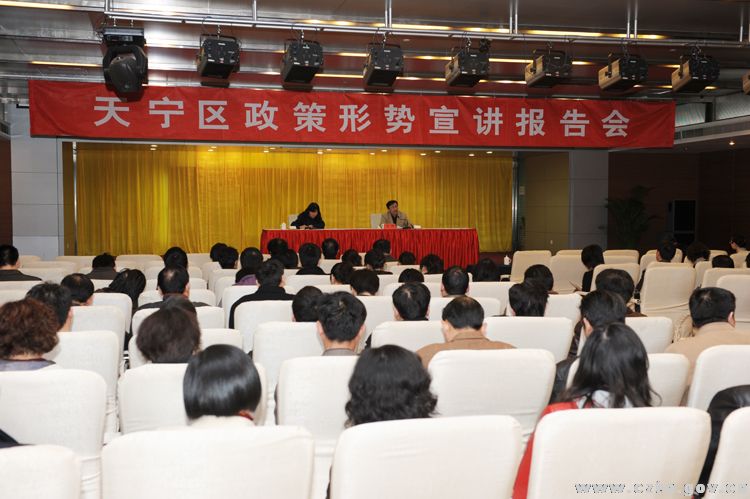 3月25日、4月2日,天宁区举办了两场当前政策形势宣讲报告会,区人社局局长吕群作了宣讲报告。报告围绕我区“十一五”辉煌成就和“十二五”规划的宏伟蓝图,特别是天宁经济社会发展的巨大成就和宝贵经验,进行宣传教育。 报告的第一部分为“十一五”发展情况,吕群谈了五个变化:实力变“强”、 城市变“新”、 市容变“靓”、民心变“暖”、生活变“便利”。 关于“十二五”展望,吕群就我区经济社会事业转型升级的背景、我区总的发展战略以及具体的实施步骤、内容进行了阐述。 天宁区全体机关工作人员参加了报告会。