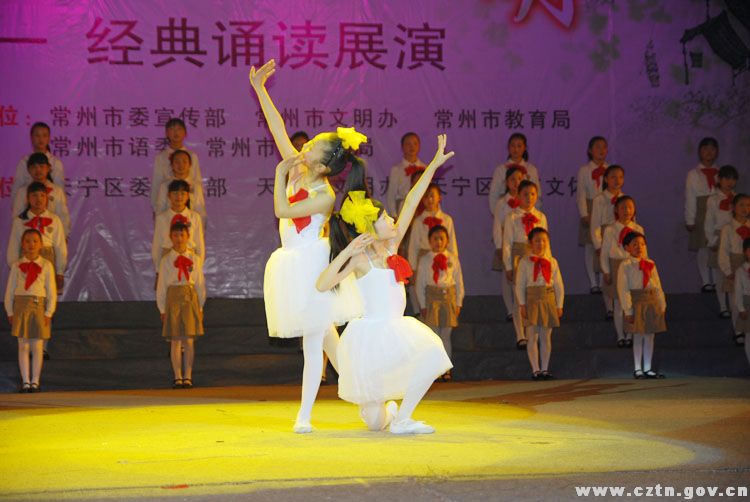 4月1日,常州大舞台里古韵悠扬,诵读声琅琅,常州市2012年度“我们的节日”系列活动首场展演——“清明节”经典诵读在天宁隆重举行。此次展演系市委宣传部、市文明办、市教育局、市语委、市文广新局主办,由天宁区委宣传部、区文明办、区教育文体局承办。市委宣传部副部长、市文明办主任张火炫,市文明办副主任黄娅芬,市教育局副局长胡鹏,天宁区委常委、宣传部长沈月芬,副区长魏敏出席了活动。 传统节日凝结着中华民族的精神和民族情感,承载着中华民族的文化血脉和思想精华,是建设社会主义先进文化的宝贵资源。今年,市文明办将牵头协调,在清明、端午、中秋等重要传统节日,组织开展“我们的节日,幸福的龙城”系列文化活动,天宁承办的“清明节”经典诵读系首场展演。 经典,是人类文化的瑰宝,记录着我们民族基因中的最高智慧,承载着丰厚的道德教育资源。广泛开展经典诵读活动,对于陶冶品德情操、塑造健康的人格,启迪人生智慧,提升文明修养和文化底蕴有着重要的意义。 张火炫在致辞中说,广泛开展各类节日文化活动,弘扬传统文化,是落实党的十七届六中全会精神,推进常州文化名城建设的重要举措,也是满足人民群众社会文化需求的重要载体。各辖市区要按照全市统一部署,精心组织,认真落实。要以社会主义核心价值体系建设为根本,以群众广泛参与为关键,以经典诵读、节日民俗、文化娱乐和体育健身活动为载体,坚持贴近实际、贴近生活、贴近群众,深入挖掘传统节日的文化内涵,积极创新传统节日的形式和载体,引导人们进一步了解传统节日、认同传统节日、喜爱传统节日、过好传统节日,着力营造喜庆祥和、团结稳定、家庭幸福的浓厚节日氛围。在全社会唱响共产党好、社会主义好、改革开放好、伟大祖国好、各族人民好、美丽家乡好的时代主旋律。 天宁区委常委、宣传部长沈月芬发表讲话。她说,这次活动是对我区精神文明和思想道德建设工作的极大推动和鼓励。近年来,天宁通过“推进城市更新、打造品质之区”战略的实施,在全区上下大力唱响时代主旋律。积极营造“爱党、爱国、爱家乡”的浓厚氛围,提升拓展文明城市创建成果,大力推进社会主义核心价值体系建设,促进了社会主义文化的大发展大繁荣,凝聚和巩固了全区上下争科学发展之先、领社会和谐之先、率基本实现现代化之先的思想基础和精神动力。 沈月芬指出,中华文明源远流长,传统文化博大精深。我们相信,本次展演一定会充分展示我们的悠久历史、深厚文化、时代风采和文明素养,一定会使我们在吟咏诵读中接受广博的文化滋养,一定会为经济社会的又好又快发展提供强大的精神动力和文化支撑。 清明经典诵读展演按照诵春、缅怀、展望三个篇章展开,小演员们在经典诗文的优美韵律中,一起抒发赞美春天、缅怀先烈、歌颂常州的真挚情感,让观众感受到了圣贤伟大的思想光辉。古诗吟唱《春之清明》清新古朴,情景诵读《丰碑》感人至深,诵读《天宁春风》热情洋溢,来自延陵小学、局前街小学、北环路小学等10所学校的师生参加了演出。孩子们对中国传统文化,对家乡历史的精彩演绎,赢得了观众的阵阵掌声。