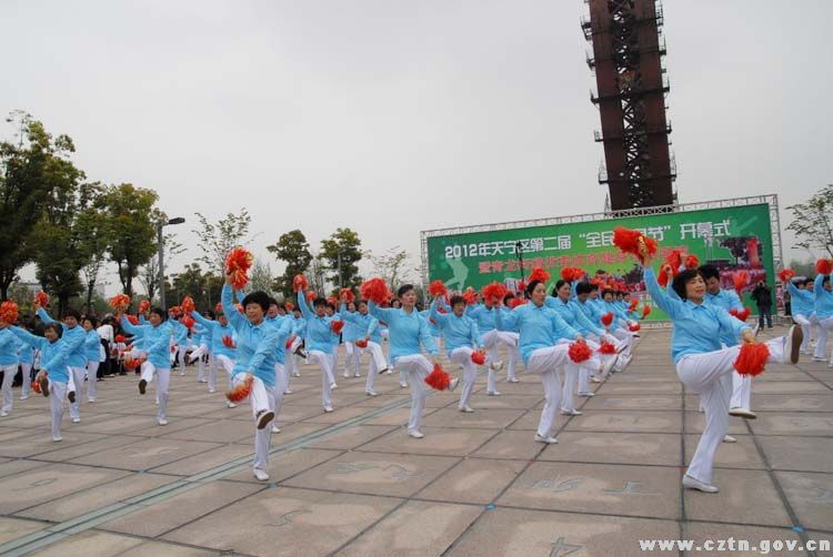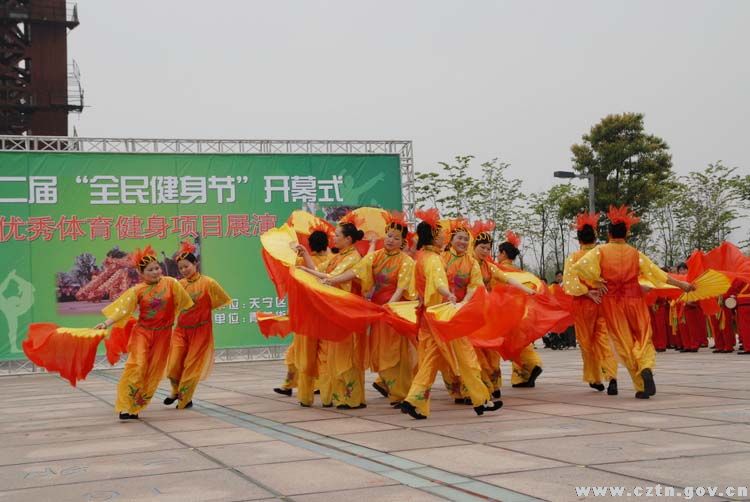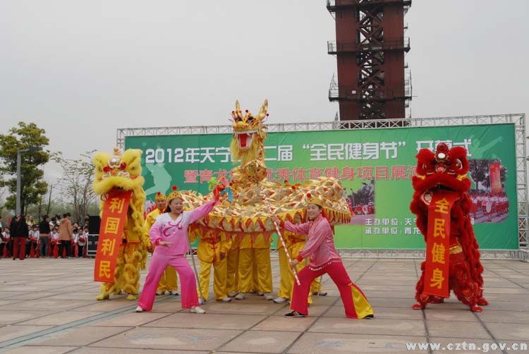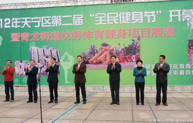 草长莺飞,生机盎然,4月13日下午,天宁区第二届“全民健身节”暨青龙街道优秀体育健身项目展演活动在紫荆公园北广场启动。市体育局纪检组长、机关党委书记任洪兴,区领导舒文、陆东明、魏敏、周登蓉出席开幕式。副区长魏敏致开幕辞。 魏敏在致辞中说,今年我区举行的第二届“全民健身节”活动,将以“强身健体、健康幸福”为主题,宣传健康生活的理念,倡导全民参与体育锻炼。4月至10月活动期间,全区将开展一系列的项目展示、培训讲座和各项体育活动,通过这些优秀的体育健身项目展演活动的宣传和带动,健身必将成为生活的一部分,市民朋友必将从中享受到更多的健康和快乐。 开幕式上,13组近千人次参加的体育健身项目展示表演,上至古稀下至孩童,各年龄层次群众共同参与;腰鼓、气功、秧歌、武术、健身操等群众喜闻乐见的项目精彩纷呈,活动现场一片浓郁而热烈的健身氛围。