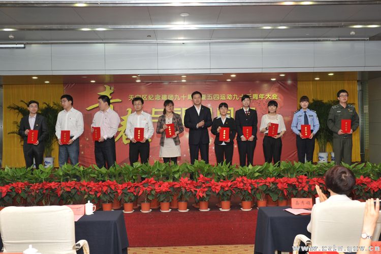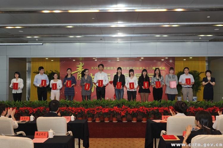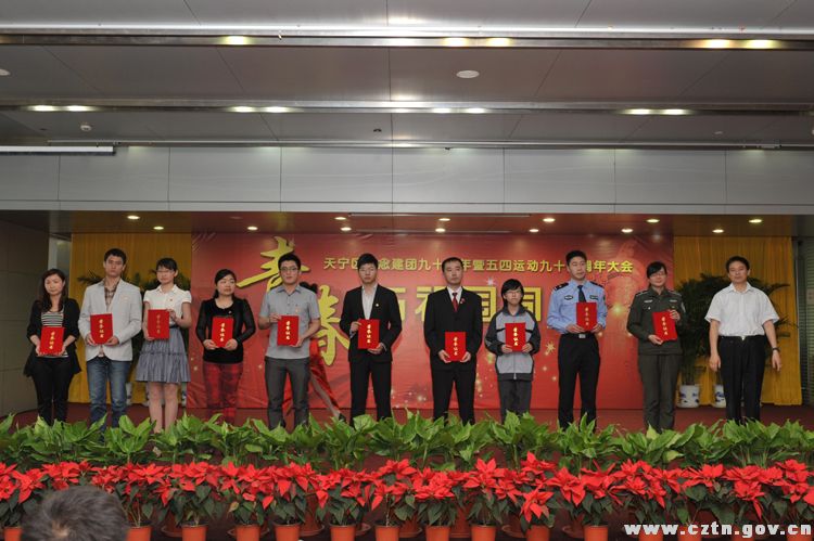会议还表彰了“天宁区2011年度优秀志愿者”、“青联委员突出贡献奖”、“天宁区2011年度优秀共青团员”、“天宁区2011年度优秀共青团干部”、“天宁区2011年度优秀团组织”。来自全区各界的青年朋友表演了音诗画《青春、与祖国同行》、情景朗诵《丰碑》、合唱《我和我的祖国》等节目,充分展现出天宁青年积极向上、奋勇拼搏的良好精神风貌。