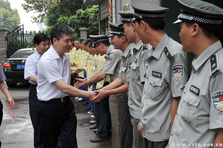 连日来,常州市最高气温高达摄氏35度以上,坚守在生产工作一线职工的生活生产如何,时刻牵动着区领导的心。 21日上午,区领导陈正春、顾卫东、嘉秀娟、蒋耀、舒文、金继英、管黎芳,对在一线工作的公安干警、环卫工人、交巡警、城管队员等进行了走访慰问,为在高温中辛勤工作的职工送去了夏日的“清凉”。 每到一处,区领导都与一线职工一一握手,感谢一线工作者冒着高温不辞辛苦地工作,感谢他们为天宁发展做出的贡献,并给他们送去了慰问金,同时叮嘱大家要劳逸结合,注意身体。