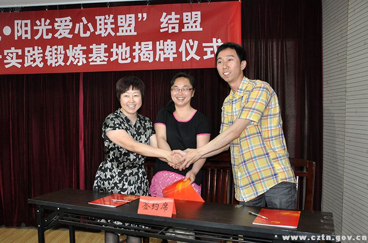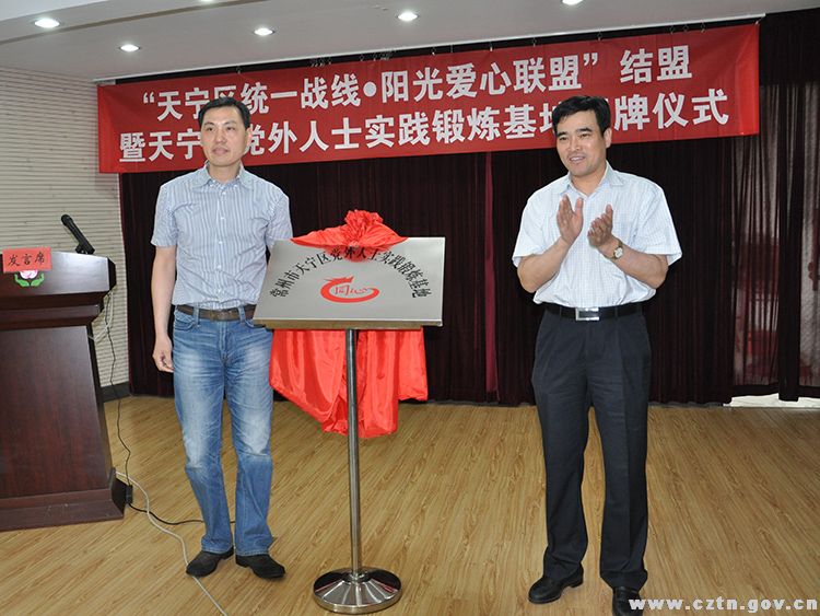 活动现场,市委统战部副部长、市社会主义学院院长章卫忠与区委常委、组织部长蔡旭为“常州市天宁区党外人士实践锻炼基地”揭牌;区政协副主席、区委统战部长周登蓉与阳光爱心联盟负责人张炜签订了“天宁区统一战线·阳光爱心联盟”结盟协议书。