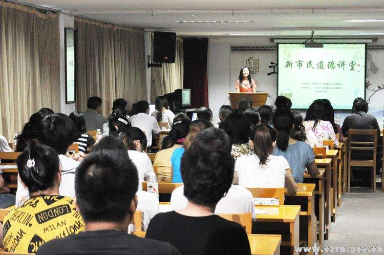 7月3日晚,由市人社局、市文明办主办,区人社局、青龙街道承办的“2014年常州市新市民道德讲堂”在青龙苑新市民公寓开讲。居住在此的近百位新市民们闻讯而至、热情参与了本次道德讲堂。市委宣传部副部长、文明办主任陈志良,市人社局副局长苏叶,副区长管黎芳出席了活动。