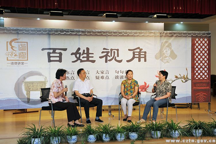 为了探索道德讲堂功能多元化,天宁打造了“百姓视角”这一全民参与、全民讨论的“道德讲堂”子栏目。“百姓视角”主要是将发生在群众周边的一些热点、难点问题,通过情景剧或DV视频的方式展现在群众面前,并就问题的走向组织观众进行评议,倾听不同意见,通过“你言、我言、大家言、句句真言;热点、焦点、疑难点、谈谈观点”这一定位,以事警人,以人警己,从而达到市民一起提高自身素质、一同修养自我身心的目的。