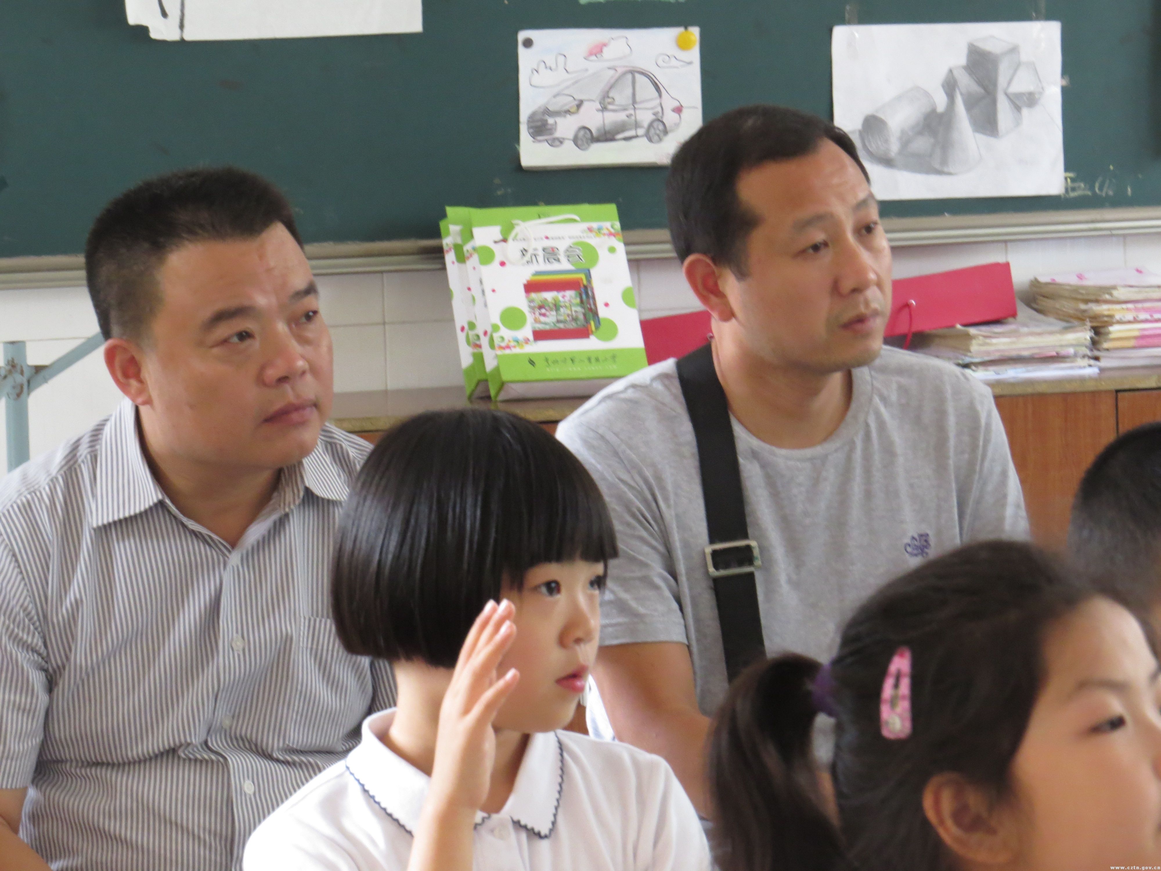 在琳琅满目的美术教室,客人们欣赏了学生的绘画作品、陶艺作品和精心创编的绘本,发出啧啧的称赞。紫云校区的许强老师带领一(6)班的孩子们研究了《多边形》,他们通过看一看、比一比、找一找、描一描、折一折等丰富的活动,理解多边形的内涵,建立多边形的概念,在趣味的活动中体验数学的魅力。翠竹校区的徐洁老师带领二(8)班的孩子们走近银河,好奇地问一问、自信地讲一讲、美美地读一读、仔细地认一认,在丰富的想象中品味文字的魅力。低年级孩子童稚的话语、丰富的想象让听课老师一次次忍俊不禁,二实小教师扎实的学科素养、自如的互动交流让来访老师一点点认同称道。