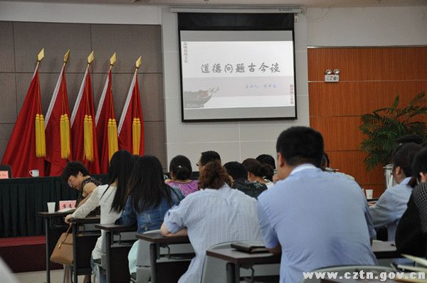 胡教授首先用诙谐有趣的语言揭示了当前社会道德状况存在的一些问题,并就这些问题产生的原因进行了分析,这些分析为参会人员进一步思考如何更好地践行社会主义核心价值观指明了方向。胡教授还通过对中国古代道德建设情况和传统文化的讲解,点明了道德建设对整个社会和国家的重要作用,一个好的道德引领,可以强盛一个国家和民族。反之,道德建设的缺失,会导致一个国家和民族的消亡。最后,胡教授为广大党员干部讲述了习近平总书记关于弘扬中华优秀传统文化、培育和践行社会主义核心价值观的重要讲话精神,以扎实推进社会主义核心价值观的培育和践行,为中华民族实现伟大复兴提供支持。