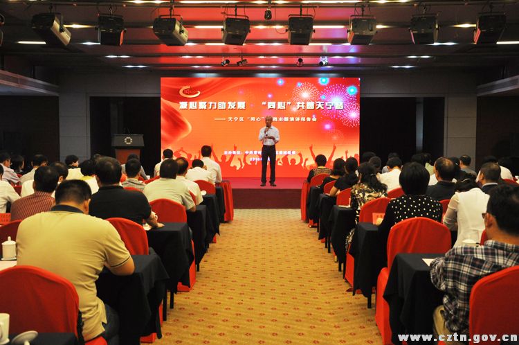 9月29日下午,天宁区隆重举行“凝心聚力助发展,同心共圆天宁梦”主题演讲报告会,集中展现全区“同心”实践活动的成果,充分彰显统战成员在服务科学发展中的资源优势,生动反映全区统一战线与党同心同向、同心同行的优良传统和核心价值。 报告会现场,来自各行各业、各个党派的9名优秀代表通过演讲或微电影进行了形象展示。他们中有教育、医疗界的专家学者;有接力天宁梦的“创二代”;有坚守公益梦想的志愿者;有积极参政议政的社情民意信息员;有带领广大外来穆斯林勤劳致富的少数民族联络员;有不忘初心,坚持前行的“海归”社工,他们为美好天宁的建设,奉献着智慧与力量。 市委常委、市委统战部部长张跃指出,在天宁区委、区政府的正确领导下,天宁统战工作的力量不断增强、载体更加丰富、氛围更加浓厚。在贯彻落实全市“同心”实践活动的过程中有激情、有创新、有思路、有办法,特别是深入实施的“企业行、社区行”主题活动,取得了很好的成效,为天宁现代化建设汇集了广泛的力量支持。 区委书记陈正春充分肯定了全区统一战线在天宁经济社会发展中作出的积极贡献,他希望广大统战成员以身边的先进典型为楷模、发挥优势、勇于担当、履行职责,同心共建品质新天宁,同心共谱发展新篇章。 出席活动的还有市、区统战系统各部门各单位的领导,镇党委、各街道党工委书记、区各部委办局领导、全区各界人士,以及广大基层统战工作者。