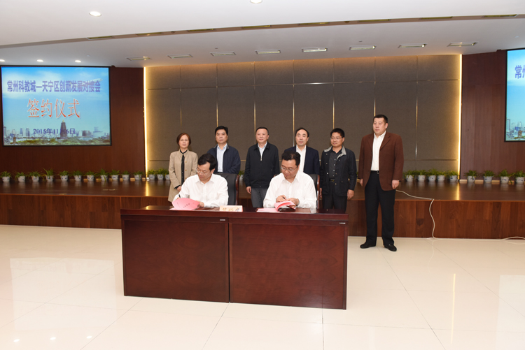 11月6日,我区与常州科教城举行了创新发展对接会,市委常委、科教城党工委书记徐光辉、区委书记宋建伟、代区长许小波等领导出席会议。 徐光辉强调,这次对接会的主要目的是加强双方的学习与交流、洽谈与合作。天宁作为常州的中心城区,近年来,社会经济发展迅速,转型升级反应快,城市面貌变化大、科技创新工作有亮点,人民生活幸福指数高。 他认为,科教城今后的发展方向,要结合当前十八届五中全会的精神,牢牢把握“发展”的主旋律,坚持用“五大理念”破解发展中的难题,实现人才聚集、成果转化、新兴产业等方面的重大跨越。 他提出,天宁与科教城的合作,重点在科技合作,要建立紧密共享的合作关系。要从科技创新、开放合作、企业主体、营商服务等方面,进行全面深入的交流与合作。 宋建伟认为,近年来,我区在“推进城市更新、打造品质之区”总战略的引领下,发展的质量和效益有了显著提升。 他表示,天宁已经进入转型升级发展的攻坚期,要实现优势产业高端化、新兴产业规模化、传统产业品牌化的目标,最大的动力在于科技创新,最迫切的需要就是科技人才。常州科教城在科研教育、创新平台、人才培养等方面有着丰富的资源,在推动科技成果转化、促进产学研合作过程中积累了丰富经验、取得了很大成效。 他期望,在今后的合作中,常州科教城能向天宁传输更多的创新理念、推介更多的科研成果、培养更多的技术人才,为天宁推进产业升级提供更多的指导和帮助。 会上,科教城管委会与区政府签订全面合作协议,双方表示要深化合作、互惠共赢。科技城研发机构与我区参会企业还举行了产学研生物医药对接会,新材料、新能源对接会,智能装备专场对接会。 徐光辉等一行人考察参观了我区天晟新材、黑牡丹等科技园区和相关企业。