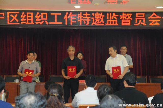 会议由钟部长主持。钟部长宣读了《关于聘请第五批特邀监督员的通知》,房部长向三位特邀监督员代表颁发了聘书,茶山街道党工委委员陆金龙和区政府办公室副主任狄舜尧分别代表社会团体和机关干部作了表态发言,闵部长通报了天宁区组织工作的特色做法以及下一步工作打算。