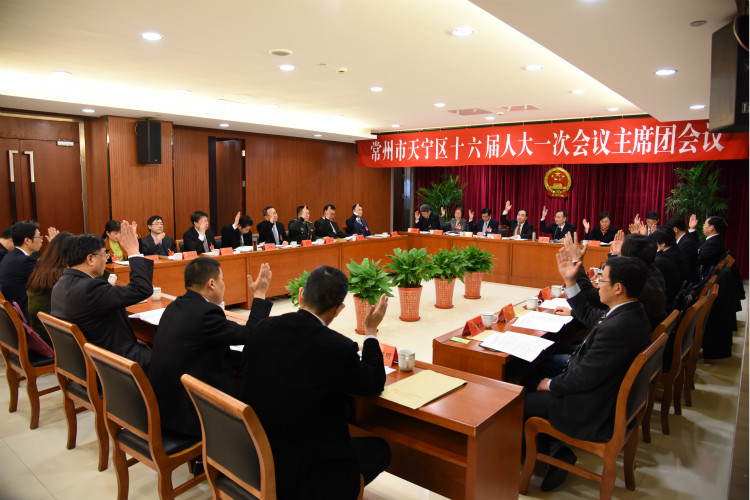 1月5日下午,区十六届人大一次会议举行主席团第一次会议。会议由区人大常委会主任蒋耀主持。 区十六届人大一次会议大会主席团成员共33人,本次会议实到30人,符合法定人数。 会议推定宋建伟、蒋耀、蔡旭、沈月芬、陈晓萍、陆东明、黄新江为大会主席团常务主席;决定阙振华、张洪兵、杨琪为大会副秘书长;会议通过了大会执行主席分值名单和大会日程。 会议决定,代表10人以上联名提出议案的截止时间为:2017年1月7日上午11时。代表提出建议、批评和意见的截止时间为2017年1月7日下午4时30分。 会议还通过了大会《选举办法》(草案)、《关于设立常州市天宁区第十六届人民代表大会财政经济委员会和法制委员会的决定》(草案)、《关于常州市天宁区第十六届人民代表大会专门委员会组成人选的通过办法》(草案),并决定提交代表审议。