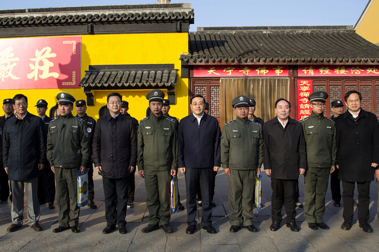 在天宁寺门口,费高云看望慰问了城管执法队员,对队员们的辛勤付出表示感谢。他说,常州城市长效综合管理工作在全省乃至全国都有一定知名度,希望在新的一年里,城管执法队员能继续发扬爱岗敬业、无私奉献的精神,为营造整洁美观的市容市貌再作贡献,把“常州城管”这张名片做得更好、擦得更亮。