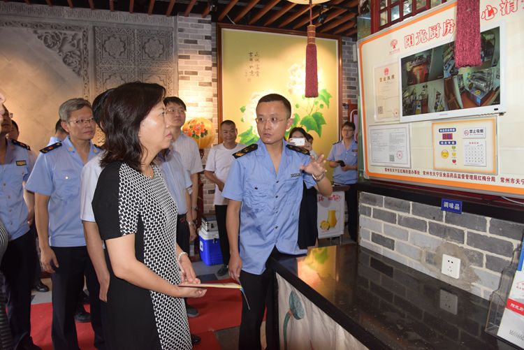 8月3日上午,天宁区竹林南路“阳光厨房”放心消费示范街揭牌仪式正式举行。活动当天,副市长许峥在市食药监局、天宁区政府相关领导的陪同下,对示范街进行了参观调研,肯定了创建工作所取得的成效。