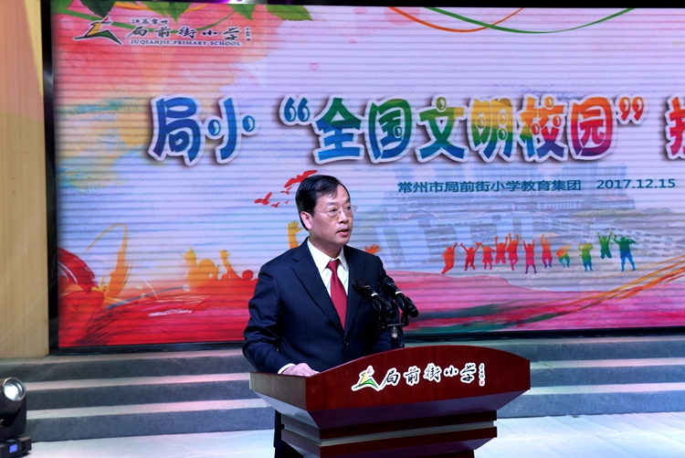 副市长李林表示,局小是一所底蕴深厚的学校,继承了龙城书院的历史传统,不负历史使命,今天获得首届“全国文明校园”的称号,是局小的荣耀,也是常州教育的骄傲。希望局小扩大教育资源优势,彰显百年名校品质,同时发挥示范、辐射的作用,带领全市教育事业均衡发展,让更多孩子享受到优质的教育。