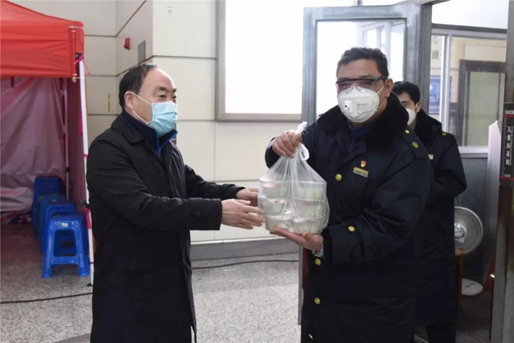 桂花香馅裹胡桃,江米如珠井水淘。俗话说,吃完汤圆或元宵之后才算过完年。2月8日傍晚时分,区委书记宋建伟一行前往火车站,把一大锅热气腾腾的元宵送往疫情防控一线,为元宵佳节仍坚守在防控一线的工作人员送上节日问候。 在管控点,宋建伟为在岗的医护人员、公安、城管等工作人员亲手送上一碗碗热乎的元宵,并仔细询问他们的工作情况。宋建伟代表区委区政府向所有奋战在防控一线的工作人员表示慰问与感谢,鼓励他们坚守一线,坚决打赢疫情防控阻击战,保障人民群众生命健康安全。 宋建伟给被劝返人员送上元宵,让他们在异地他乡也感受到节日的温暖。此外,宋建伟还给驻火车站其他兄弟区的防控工作人员送上元宵,表达节日慰问。 与此同时,区长许小波也将节日慰问送到了高速青龙道口一线防控人员手中。“刚出锅的,趁热吃!”车刚停稳,许小波就搬下一箱元宵。他代表区委区政府向所有工作人员致以节日的问候,对他们为疫情防控的辛勤付出表示感谢,并叮嘱值夜班的同志注意防寒保暖,做好自身防护措施。