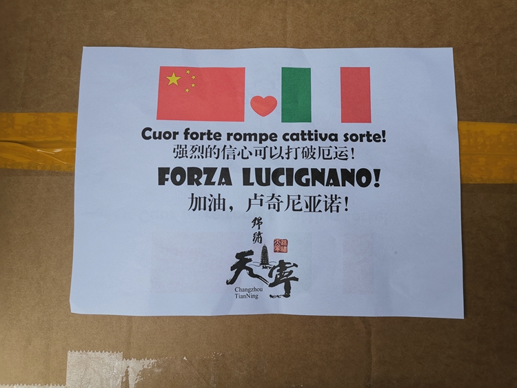 “强烈的信心可以打破厄运!加油,卢奇尼亚诺!”23日下午,10箱印着这些字样的2万只医用口罩,寄往意大利中部小城卢奇尼亚诺。这是常州首次向欧洲的海外友好城区捐赠抗疫物资。 卢奇尼亚诺是一座位于意大利中部托斯卡纳大区佛罗伦萨、阿雷佐、锡耶纳和佩鲁贾四省交界处的小城。 去年11月7日,在2019江苏乡镇发展国际交流会上,天宁区作为常州市唯一一个签约辖区,与意大利卢奇尼亚诺市签订了友好城区意向书。 自新冠肺炎疫情在欧洲爆发以来,天宁区始终关注卢奇尼亚诺抗疫进展,天宁区商务局第一时间与卢奇尼亚诺市旅游委员会主席斯特法诺·克雷斯蒂取得联系、了解情况,“我们这里目前没有确诊病例,但医疗物资十分紧缺,特别是口罩,市面上已经找不到购买的渠道了。”斯特法诺·克雷斯蒂语气十分焦急。 友城的情况一直牵动着天宁人民的心。“我们得知情况后,立即订购了一批口罩发往卢奇尼亚诺,这批口罩已于近日顺利送达。运输渠道打通后,我们再次组织货源,加大口罩数量,尽我们最大的力量解他们的燃眉之急。”天宁区商务局负责人表示。 在获悉2万只医用口罩寄出的消息后,卢奇尼亚诺市长卡西尼代表卢奇尼亚诺全体市民感谢天宁,“在我们如此困难的时刻,天宁给卢奇尼亚诺市民送来了特别的礼物。虽然我们的交往在当前受到疫情的阻碍,但疫情过后卢奇尼亚诺将会与天宁携手共同推进已列入计划和有待开展的各项交流合作。” 据悉,下一步天宁区将持续关注卢奇尼亚诺人民的需求,并提供抗疫物资援助。