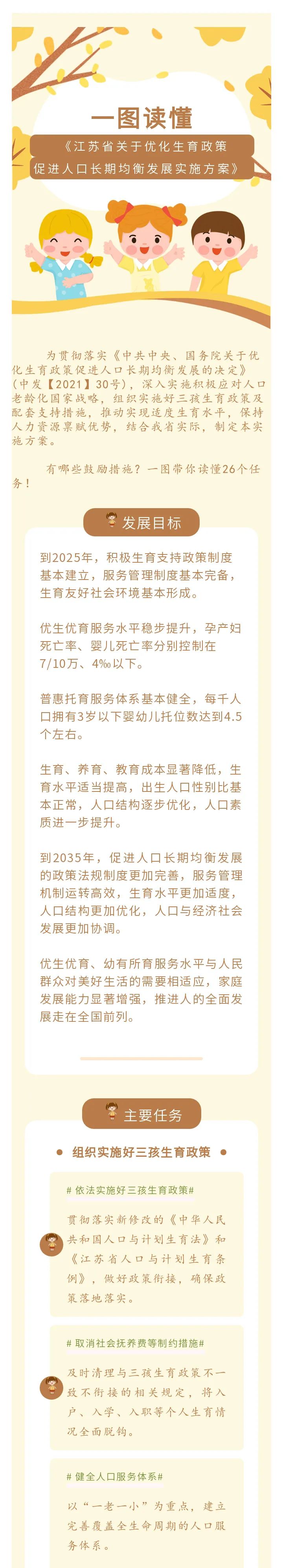 一图读懂《江苏省关于优化生育政策促进人口长期均衡发展实施方案》