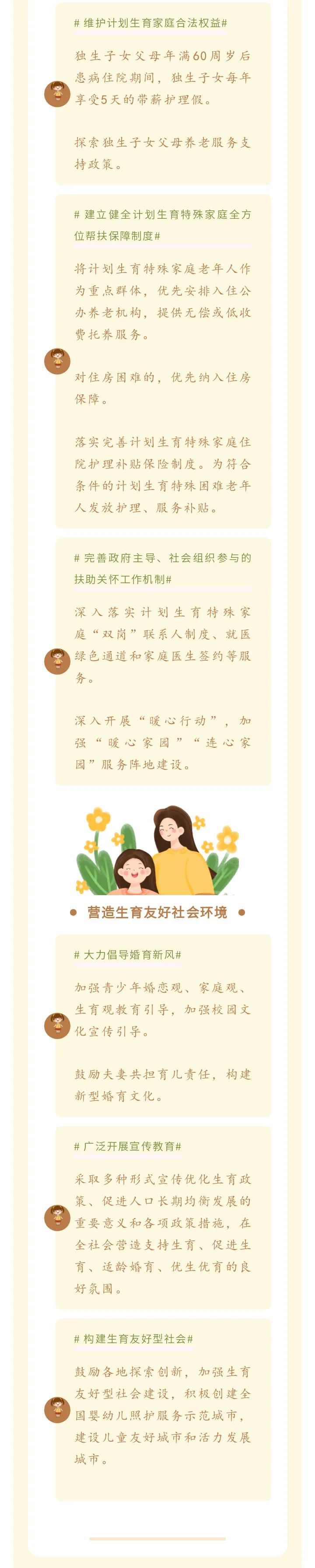 26.构建生育友好型社会。鼓励各地探索创新,加强生育友好型社会建设,积极创建全国婴幼儿照护服务示范城市,建设儿童友好城市和活力发展城市。