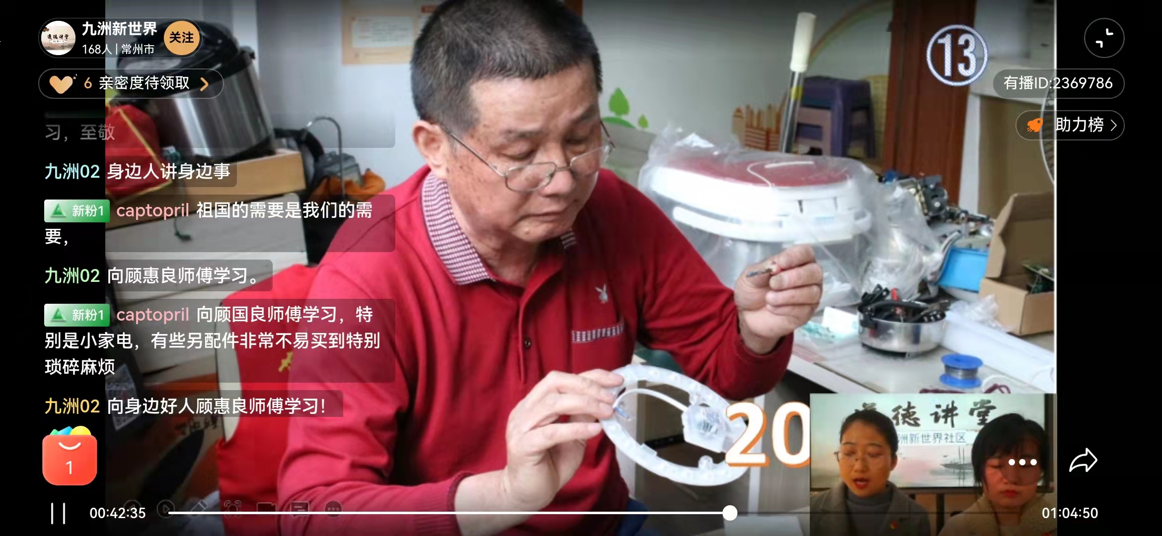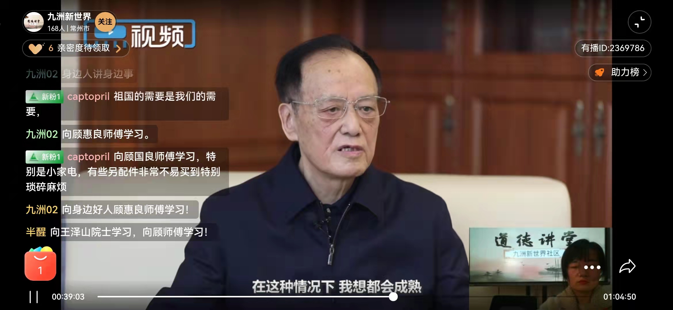 活动包括唱歌曲、学模范、诵经典、谈感悟、送吉祥五个环节,在学模范环节,大家一起观看了江苏时代楷模王泽山院士的感人事迹,聆听了九洲新世界社区双拥便民服务站志愿者顾惠良自退休后持续为居民免费维修小家电的故事。王泽山院士坚韧不拔的科研精神和勇于担当的爱国主义精神、顾惠良七年来坚持不懈、无私奉献的志愿服务精神深深的感动了大家。大家纷纷在留言区写下的自己的感悟。