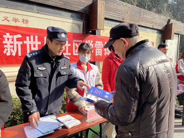 社区红十字会向居民发放应急救护宣传册