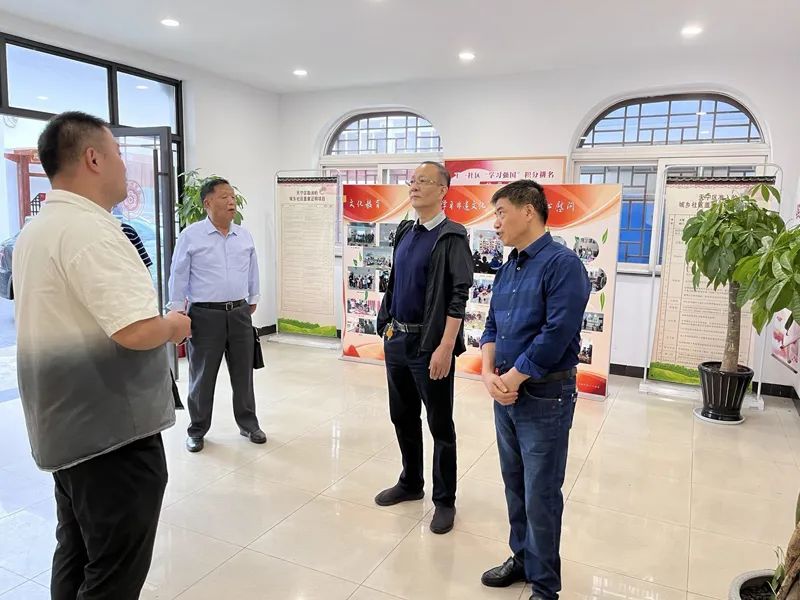 区关工委蒋主任一行首先观看了围绕“爱国教育”“非遗传承”“爱心慰问”三个主题的关工委活动展板;实地察看了青少年实践基地:区级非遗虎头鞋工作室、电子阅览室、青少年法治课堂直播室、图书阅览室;听取了工一社区居诗舟书记所作题为《薪火传承担使命春风化雨育桃李》的情况汇报。