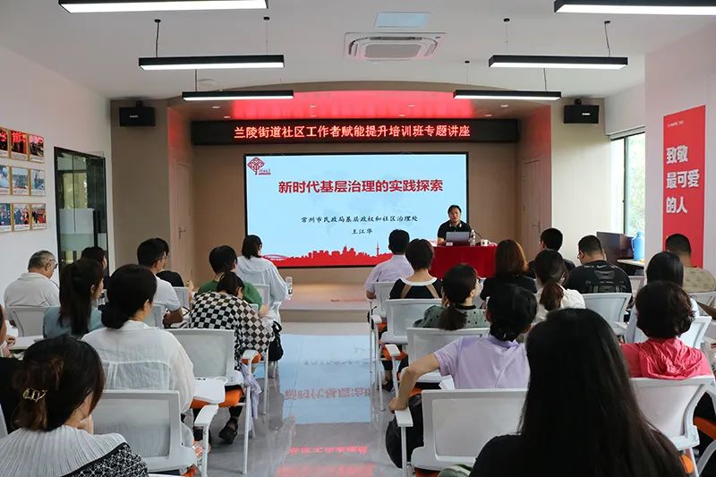 为全力提升城乡社区服务体系建设水平,推动基层治理体系和治理能力现代化,快速提升社区工作者服务能力和治理能力。近日,兰陵街道特邀常州市民政局基层政权和社区治理处处长王江华,讲授主题“新时代基层治理的实践探索”,街道村(社区)正职、副职、街道职能科室相关人员约50人参加学习。