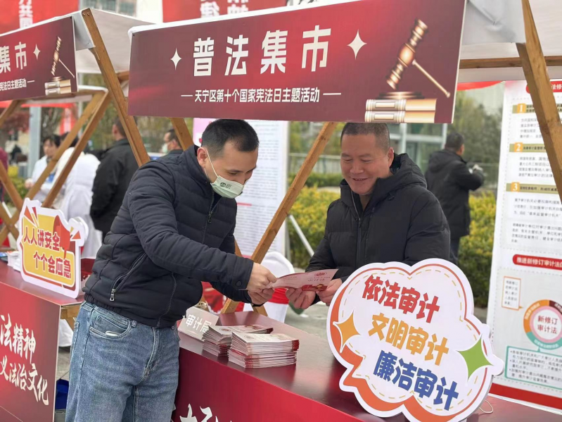 近日,为大力加强宪法学习宣传,强化宪法意识,弘扬宪法精神,建设社会主义法治文化,常州市天宁区审计局以“宪法宣传日”活动为契机,组织人员,设立咨询服务点,围绕新修订的审计法、党政主要领导干部和国有企事业单位主要领导人员经济责任审计规定、内部审计规定等审计法律法规,热心向市民讲解和推广国家审计工作,旨在营造良好的法律氛围,打造优异的营商环境。