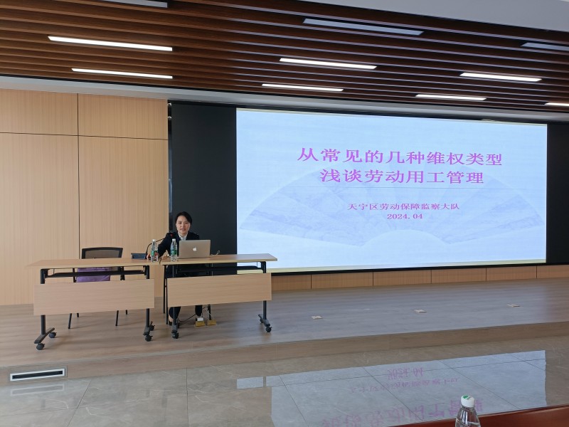 培训会上,天宁区劳动保障监察大队副大队长匡瑾以劳动关系的建立、试用期的规定、工资支付、劳动合同的解除和终止等多个劳动维权典型案例为切入点,充分阐述了企业正规劳动用工管理的重要性和必要性。