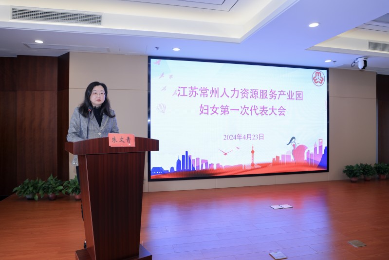 朱文青在大会上致辞,她对江苏常州人力资源服务产业园妇联的成立表示祝贺,她对做好新时代人力资源工作,发挥妇联“她”力量讲三点意见:一是坚持党的领导,为行业妇女工作彰显新使命;二是围绕服务大局,为行业妇女工作谱写新篇章;三是立足本职工作,为行业妇女工作作出新贡献。