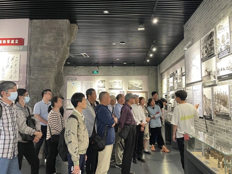1938年,新四军在茅山地区开辟革命根据地,广泛开展游击战争,艰苦奋斗,东进抗日。高举党的旗帜,依靠人民群众,锻造汇聚抗日铁军。纪念馆内陈列着大量新四军抗战文物,史料和照片,详细记录了新四军坚定地团结人民,“八年抗战,十年征程”的战斗历程和光辉历史。党员同志们认真聆听讲解,对馆中的每一张照片和每一件文物都仔细观看,驻足沉思。在一张张英勇奋战的照片,一个个震撼人心、扣人心弦的革命故事中,重温回顾革命先辈为了民族独立、人民幸福而无畏牺牲,浴血奋战的光辉峥嵘历程,体验感悟坚守信仰,用忠诚和信念铸就“铁军忠魂”的伟大革命精神。
