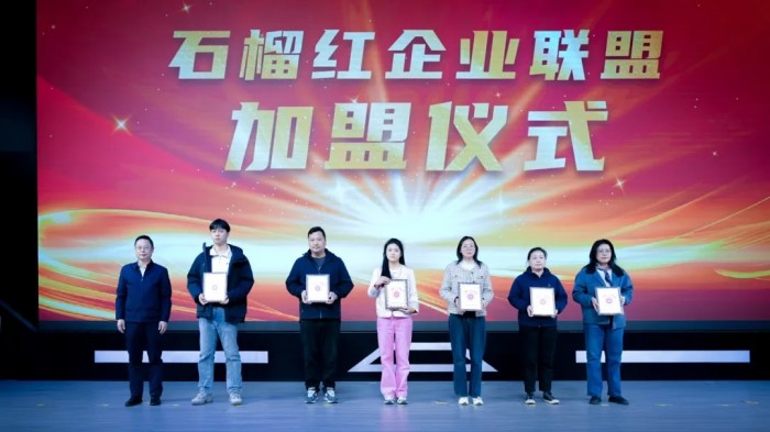 为推动各族群众跨区域双向流动更为频繁,全面推进互嵌式就业创业模式,促进各族群众广泛交往交流交融,活动现场举行“石榴红”企业联盟加盟仪式,市委统战部副部长、民宗局局长邹明初为6家加盟企业授牌。