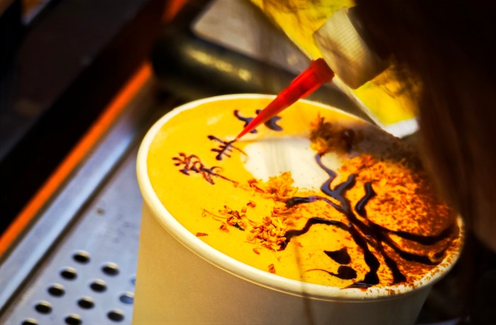 她的咖啡里,有一款名为“桂花树”的产品,在进行拉花的时候,会写上“常州”两字,好喝又好看,不少粉丝都是冲着这款来打卡的。