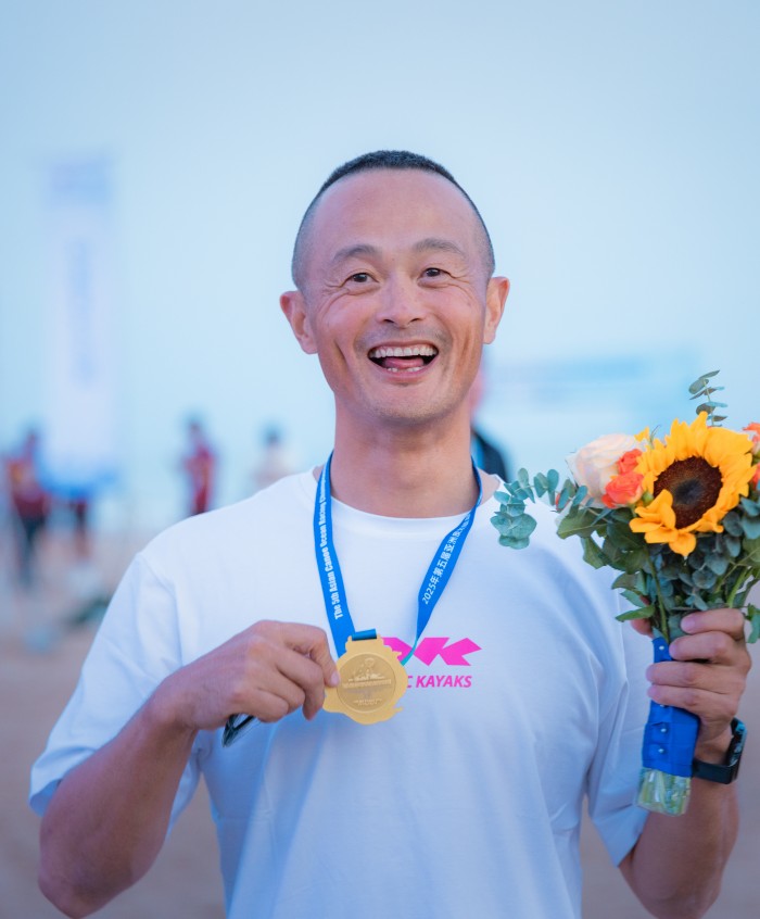 他参加了男子皮划艇海洋21公里竞速50+年龄组的比赛,并以2:17:12.46的成绩成为该组别的亚洲冠军,为祖国升起了一面国旗!