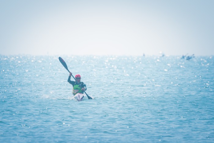 9月20日是比赛日。划出一公里之后,他就开始加速,与对手拉开距离。但当进入五公里赛段,绕过小麦岛同时遭遇到迎面强风和离岸流侧浪袭扰,47厘米的冲浪撬在“开锅浪”中颠簸,速度明显下降,划1公里甚至需要10分钟。“划的过程中,也很慌。我就只有一个念头,那就是心无杂念,虚化巨浪,看艇头,抓实每一桨!”