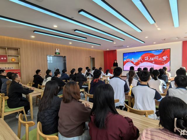 诗朗诵《青春中国,当“燃”有我》,道出当代青年对祖国的赤子之心和勇担重任的豪情壮志。在随后的互动分享中,学生们踊跃发言,结合自身学习与生活实际,畅谈感悟,表达了要向榜样看齐,苦练技能,将个人成长自觉融入国家发展大局的坚定决心。