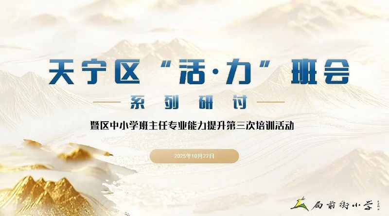 为进一步提升班主任对主题班会的设计与实施能力,夯实育人基本功,10月22日下午,天宁区“活·力”班会系列研讨暨区中小学班主任专业能力提升第三次培训活动在常州市局前街小学报告厅如期举行。
