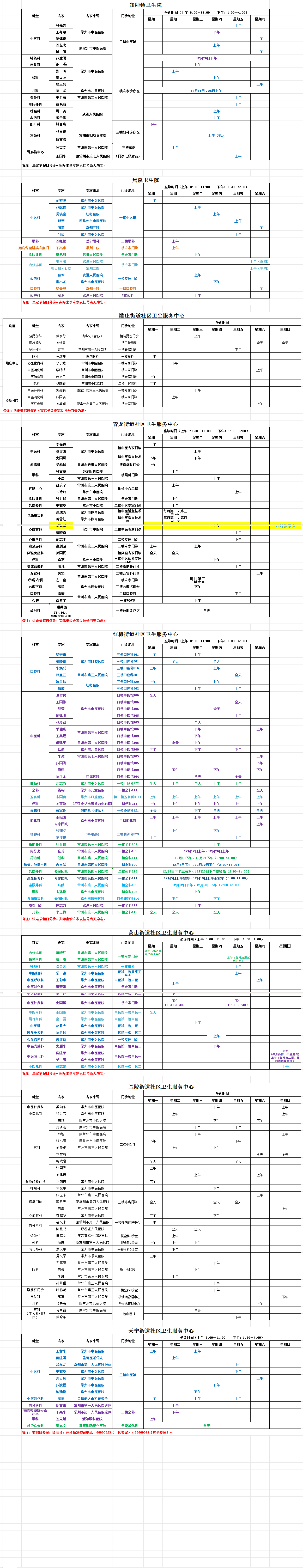 天宁区基层医疗卫生机构专家门诊一览表(12月份)