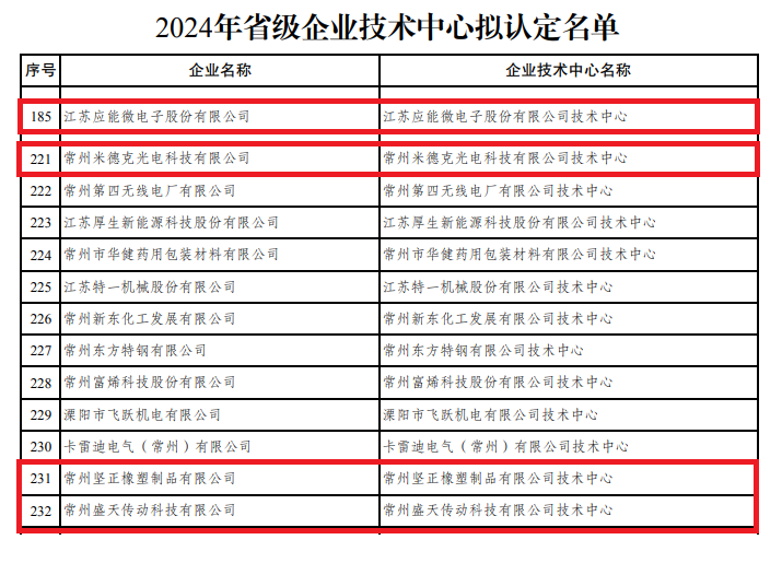 近日江苏省工业和信息化厅发布《关于2024年省级企业技术中心拟认定名单公示》,天宁区应能微电子等4家企业榜上有名!