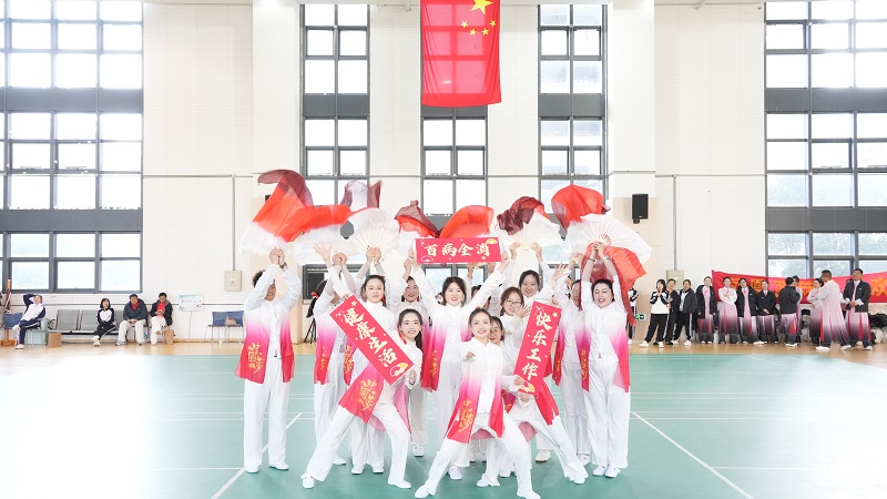 赛场上,各参赛队身着统一服装,迈着整齐的步伐有序进退场。伴随着激昂明快的音乐,教职工们动作规范有力、伸展到位,队形编排错落有致、创意十足,将八段锦的沉稳舒展与自编操的活力激情完美融合,展现出扎实的训练功底与良好的团队协作精神。