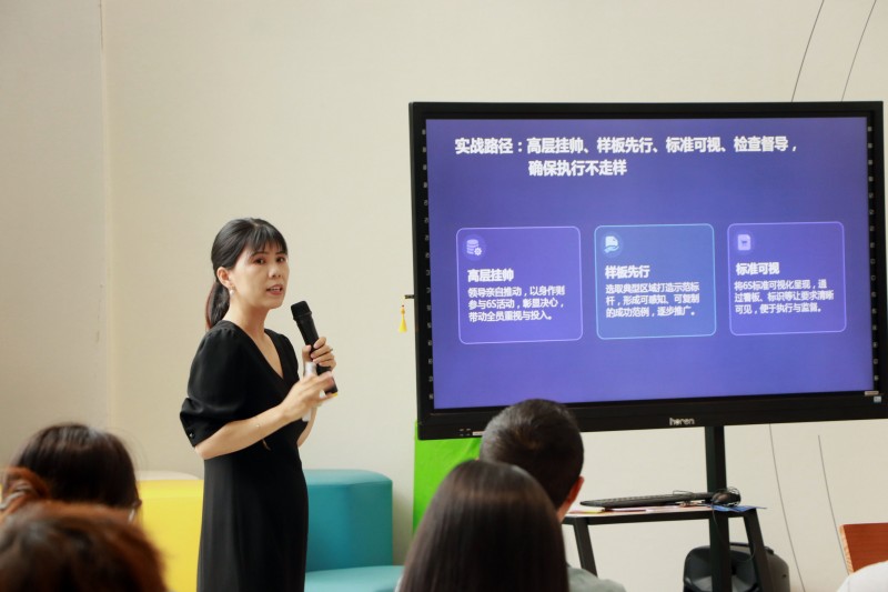 论坛的核心环节——王秀平的主旨演讲《让6S成为赋能组织与人才的战略引擎》,系统解析了6S管理战略价值的三维模型。通过“物理层-行为层-文化层”的递进框架,揭示了6S如何通过环境干预触发管理行为的进化。王秀平深信6S文化是打造优秀团队、产出优质产品的基础。她将6S具体阐释为整理、整顿、清洁、清扫、做法(按公司作业规程、等标准执行,对应遵守规章制度)、教养六个维度。“强调依规执行可打造优秀团队、产出优质产品”,这是她多年来实践经验的总结。