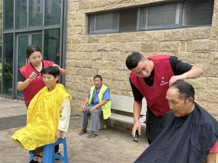 为了便于活动开展,提高效率,志愿者团队把理发室“搬”到职工休息点附近。活动现场,志愿者们一边细致修剪头发一边和环卫工人拉拉家常。“平时忙得没空理发,这服务太实在了!”刚理完发的黄阿姨笑着说。