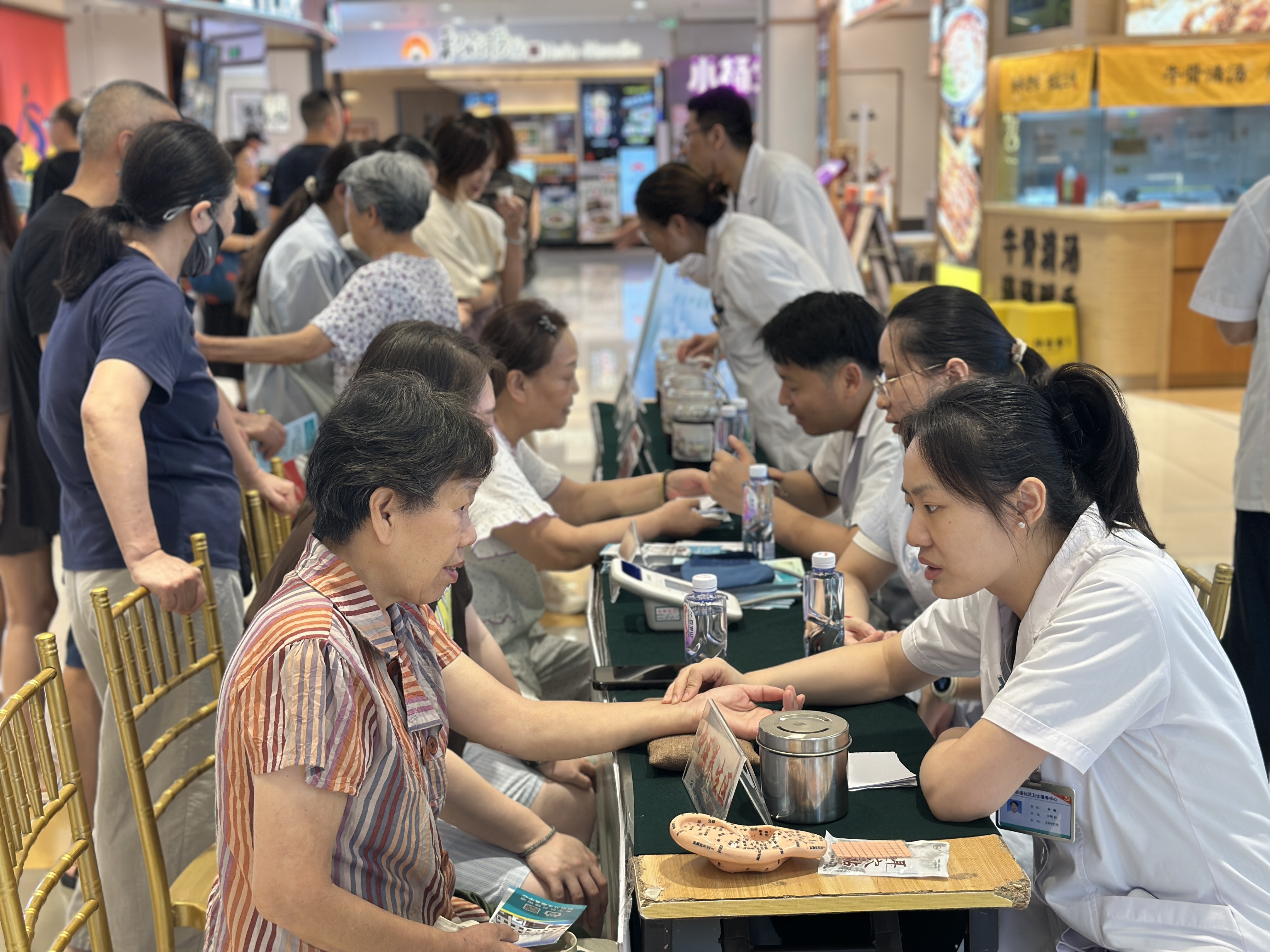 8月13日晚,天宁卫健局联合兰陵街道社区卫生服务中心中医科把“中医诊室”搬进夜市,一场名为“中医夜市 健康‘邻’距离”的便民活动在九洲新世界广场展开,让居民们在逛吃之余就能get健康福利。