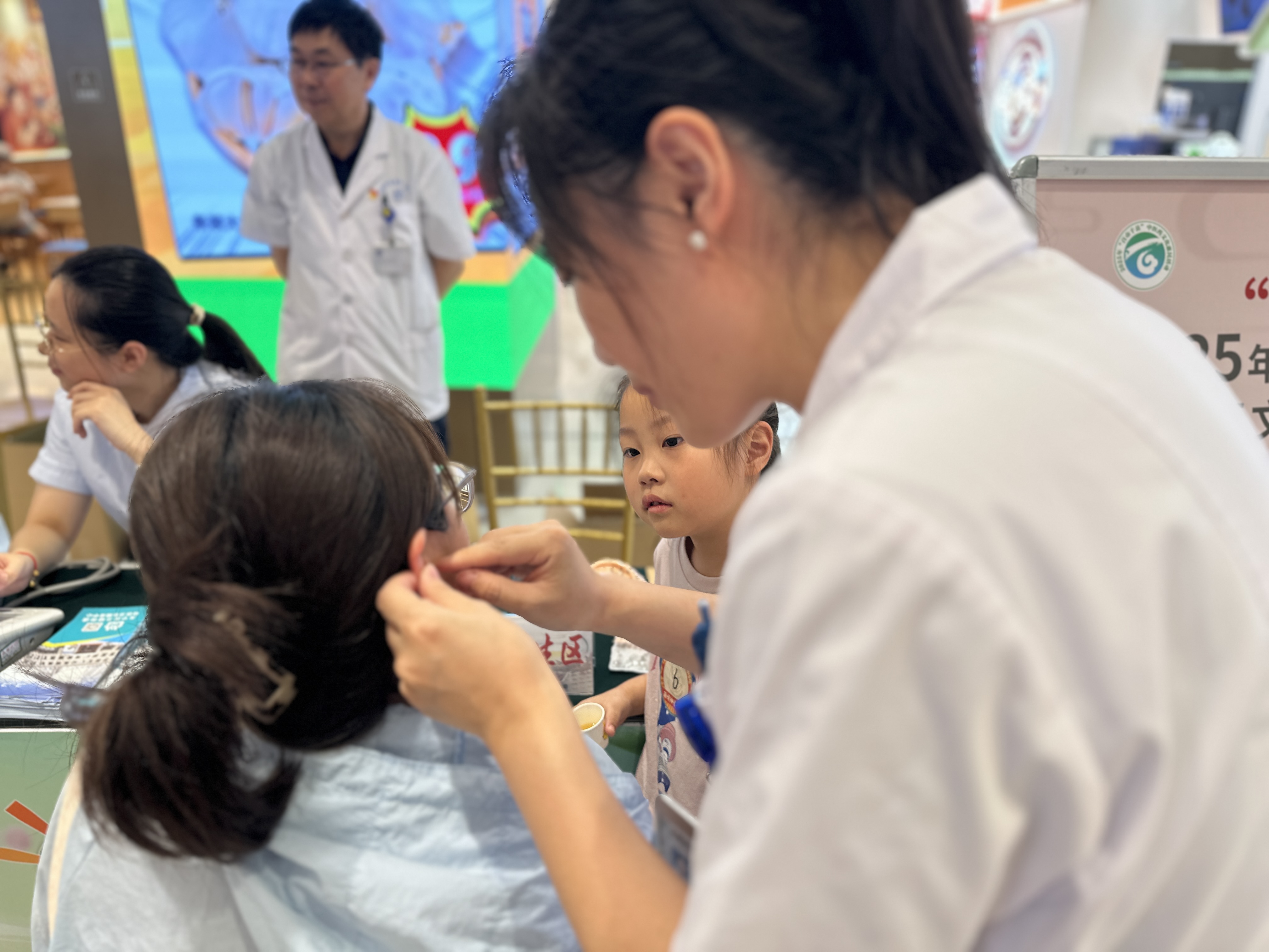 中医师们支起“摊位”,把脉问诊、耳穴埋籽体验区前排起长队。“医生,我最近总失眠,能试试耳穴吗?”居民李女士坐下,中医师熟练地为她贴上耳穴贴,讲解按摩方法。