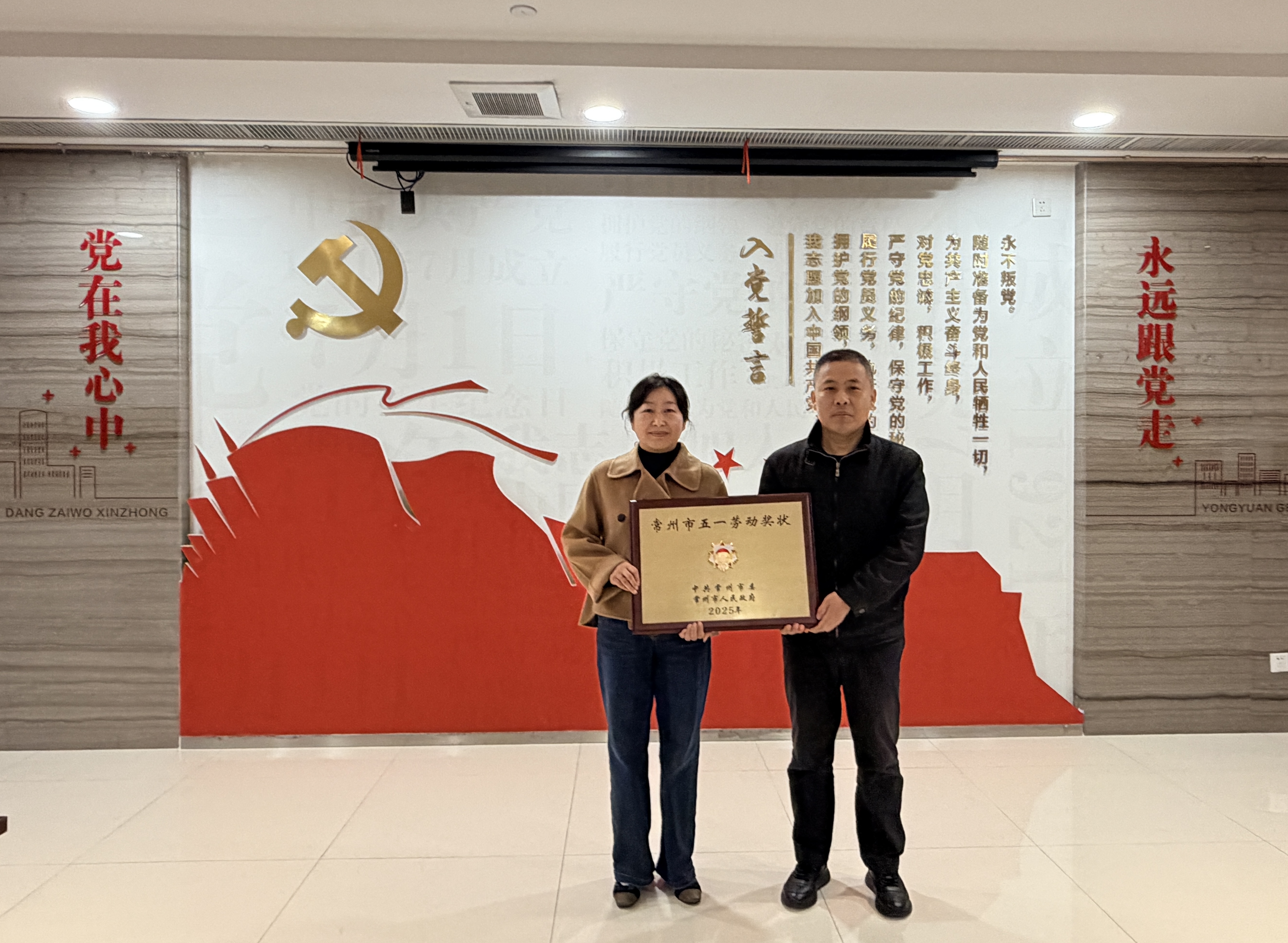 12月23日,天宁区卫健局从总工会手中接过沉甸甸的“2025年常州市五一劳动奖状”奖牌和证书。