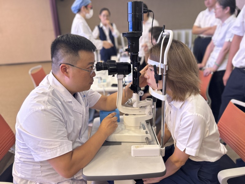 活动现场,职工们主动报名参与眼底检查、雾化熏蒸以及干眼症试纸测定等项目。银行职工是干眼症的高发群体,此次讲座对他们极具实用价值。