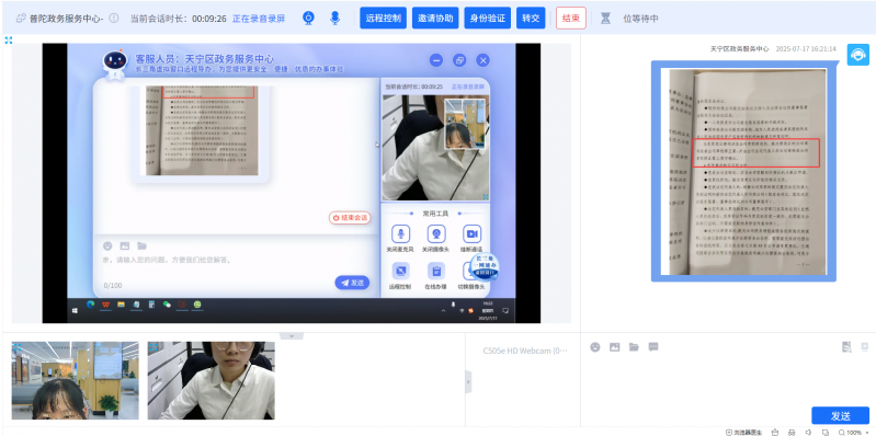 近日,中建一局集团常州天宁置业有限公司在上海市普陀区政务服务中心的指引协助下,借助长三角“一网通办”虚拟平台,向天宁区政务服务中心企业开办专区发起远程导办申请。天宁区积极响应呼叫申请,配置高清视频通话设备,由业务骨干担任虚拟窗口客服专员,依托虚拟平台视频连线、屏幕共享等功能,精准掌握企业诉求,实现“精细化梳理、一次性告知、规范性预审、全流程跟进”的闭环服务。