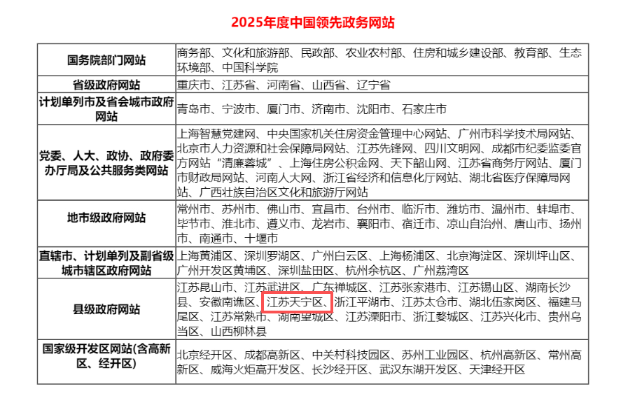 | 天宁区政府网站获评“2025年度中国领先政务网站” |