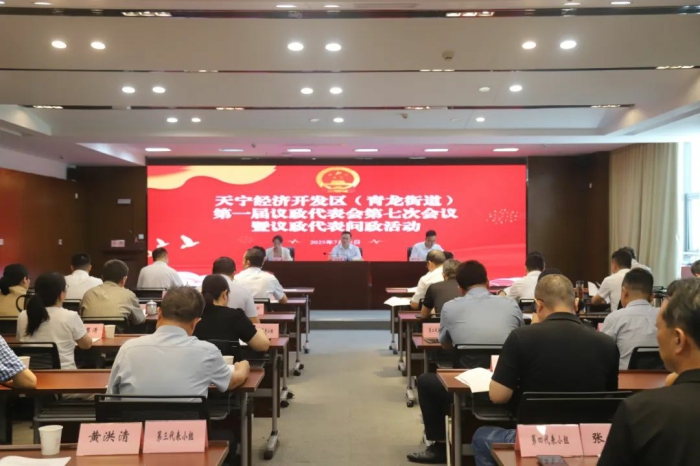 为进一步激发基层治理活力,深化全过程人民民主基层实践,助推天宁经济开发区(青龙街道)经济社会高质量发展,近日,经开区(青龙街道)第一届议政代表会第七次会议圆满召开,经开区(青龙街道)党政领导、全体议政代表参加会议,会议由人大青龙街道工委主任刘益主持。区委常委、经开区(青龙街道)党工委书记周海鹏在会议中指出,今年是“十四五”规划的收官之年,也是“十五五”规划的谋篇布局之年,做好各项工作意义重大、责任重大。下半年,经开区(青龙街道)要坚定不移做强新质生产力,持续紧盯“双争”目标,深化项目双进攻坚,向高而攀、向新而进,为书写好中国式现代化天宁答卷贡献经开区力量。