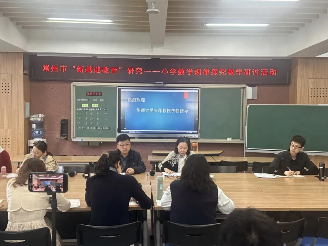 2026年4月17日,常州市“新基础教育”研究活动在局前街小学举行,本次活动有幸邀请到华东师范大学吴亚萍教授现场指导。局小集团总校长李伟平、数学教师和来自常州“新基础教育”共生体的老师们参与活动。 本次研修活动聚焦规律探究教学,分别由常州市局前街小学顾莲老师执教《乘法巧算》和施慧老师执教《有趣的杠杆》。 顾老师以师生互动出数引入,巧妙制造认知冲突,激发探究兴趣。在探索“头同尾合十”巧算时,学生有序观察特征、大胆猜想,再经举例验证与数形结合完善规律。借助图形分割移动,巧算背后的算理直观呈现。学生在“怎么算得快”的驱动下主动发现、严谨验证,既掌握了探究方法,也体会到数学规律的实用与乐趣。 施老师从自制跷跷板的生活情境切入,引导学生发现影响平衡的两个因素。随后,学生经历“规定数据——自拟数据——电子杠杆丰富数域”三个递进活动,通过动手实验、有序记录与数据分析,验证了“左边距离数×质量数=右边距离数×质量数”的平衡规律,并感悟了反比例关系。 整节课以问题链驱动思维进阶,学生在“做中学、探中悟”中完成从生活经验到数学模型的转化,体会了数学与生活的紧密联系。 课后,两位授课老师进行了现场反思,提出困惑,沈虹副校长针对上课内容,从教学切入与日常点拨策略出发,分享了规律探究教学的思考。 接下来,吴老师分析了两节课中存在的问题,给出了改进建议,同时紧扣引导学生发现规律,提供可迁移方法等核心问题,引领大家深切领悟规律探究教学的育人价值,进一步激发了老师们对教学实践的有向思辨,指明了研究方向。 重建设计时,吴老师将第一节课的内容拆分为两课时教学,确保学生有充足时间经历完整的发现与探究过程。研究可以从特例开始,引发猜想,通过观察拆分和数形结合,深入理解算理,最后经由多维练习,确保知识扎实落地。第二节课应注重探究过程的分层推进设计:在一次调整环节中发现定性规律,在二次调整环节中发现定量规律,在三次调整环节中给学生更大的探究空间,自主改变数据,聚焦验证,增进理解。最后,联系生活场景设计实操问题,引导学生运用结论解决真实情境问题,引发成就感。 最后,吴老师强调,规律探究课的核心价值在于“发现过程”与“方法迁移”。教师需为学生搭建清晰的“台阶式”教学结构,让学生在探究中自然生发分拆思维、内化数形结合能力,养成有序观察、主动探究的良好习惯。这样的课堂形态,促使规律教学从知识传递走向思维进阶,切实提升规律探究课的深度与育人价值。 |
