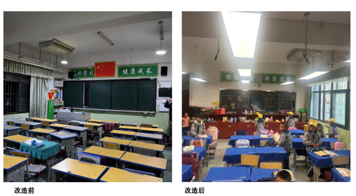 “改造后平均照度由原先的200多LX提升至500LX以上,明显高于国家标准最低要求的300LX。所有灯具均采用RG0(豁免级)低蓝光护眼光源,显著缓解眼疲劳风险,更符合少年儿童视功能发育阶段对于视觉健康照明的要求。”杨勇表示,改造后,灯具寿命可达7万小时以上,照明能耗减少27%,全年节省电费30%。
